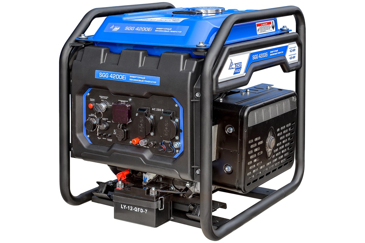 | Описание товара | Бензогенератор инверторный SGG 4200Ei с электростартом и разъемом для подключения блока автоматики, вырабатывает электричество с высокой точностью частоты и напряжения. Предназначен для подключения к нему потребителей общей номинальной мощностью до 4,2 кВт. Позволяет подключать к генератору как обычных потребителей, так и точное электронное оборудование, например, ноутбуки, LCD-телевизоры или смартфон. Благодаря использованию В этой модели инверторного преобразователя, на выходе получается стабильный ток, без каких-либо скачков, генератор способен регулировать работу двигателя в зависимости от нагрузки: к примеру, если нагрузка составляет половину от выходной мощности, то и мощность двигателя снижается вдвое; это дает значительную экономию топлива, инверторные модели получаются более легкими и компактными, чем традиционные генераторы. Благодаря двигателю, специально разработанному под инверторный генератор и особенной конструкции корпуса, удалось значительно понизить уровень шума. Режим ECO экономит топливо и увеличивает ресурс двигателя. Выход 12 вольт позволяет подзарядить автомобильный аккумулятор в экстренном случае. Инверторный генератор считается оптимальным выбором для нагрузки, чувствительной к качеству тока — такой, как аудиотехника или телевизор. Особенности конструкции: Система перевода двигателя в экономичный режим Индикаторы на панели паказывают параметры напряжения, превышение мощности генератора, низкий уровень масла. Медная обмотка альтернатора Защита от короткого замыкания, перегрузки и низкого уровня масла Антивибрационные резиновые ножки Экономичный расход топлива Стабильный ток для точных приборов Гарантийные обязательства и сервисное обслуживание: На бензогенераторы ТСС предоставляется гарантия 12 месяцев. Cеть авторизованных сервисных центров ГК ТСС обеспечивает поставку запасных частей, проведение регламентного технического обслуживания, гарантийного и постгарантийного обслуживания во всех регионах России, что выгодно отличает продукцию ТСС от большинства конкурентов. |